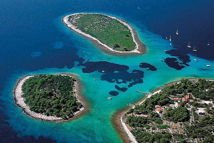 Begin your journey exploring the UNESCO World Heritage Site of Trogir, where you’ll have leisure time to wander its historic streets. Then, set sail to the enchanting Blue Lagoon at Krknjaši, where crystal-clear waters invite snorkeling and relaxation.