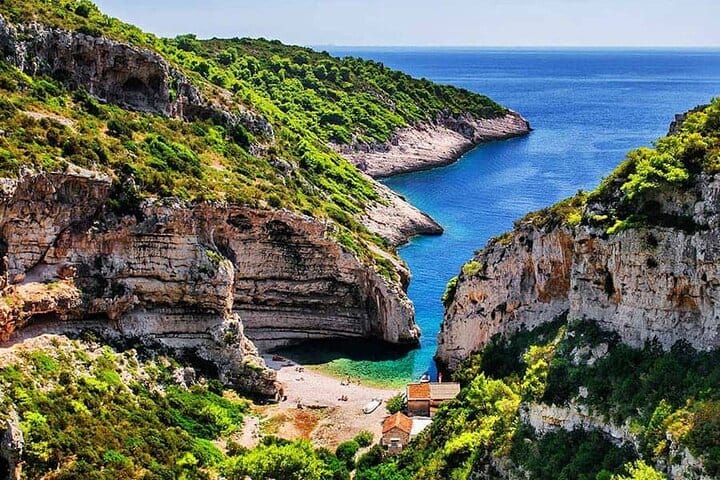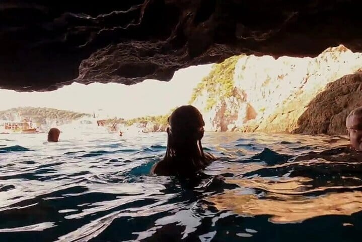 Upon arrival at the Blue Cave, we anchor nearby, providing snorkeling masks and a GoPro camera so you can capture memories as you swim through the cave’s narrow entrance. After exploring the Blue Cave, the tour continues with a cruise along the island’s dramatic cliffs-ideal for cliff jumping and enjoying the views. This private tour is entirely tailored to your preferences, with your skipper dedicated to creating an exceptional experience.